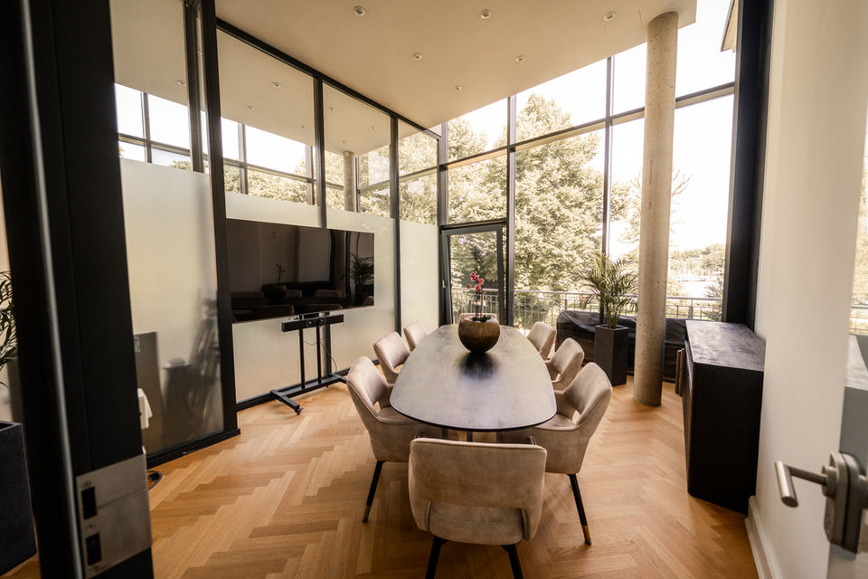Unsere Location bietet Ihnen nicht nur einen atemberaubenden Blick auf die Alster, sondern auch eine zentrale und prestigeträchtige Adresse in Hamburg. Erleben Sie eine inspirierende Umgebung, die Ihre Meetings und Events auf ein neues Level hebt – stilvoll, repräsentativ und exklusiv.